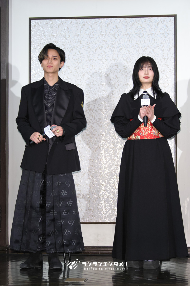 映画『鬼の花嫁』の製作報告会が2月16日(月) に、代官山鳳鳴館で行われ、W主演の永瀬廉&吉川愛が和と洋の要素を取り入れた劇中衣装にて登壇。池田千尋監督、西麻美プロデューサーを交えて作品の制作秘話や魅力を語った。