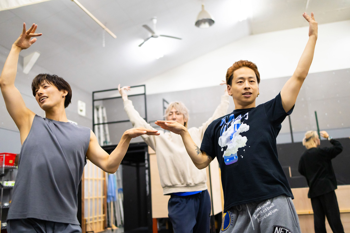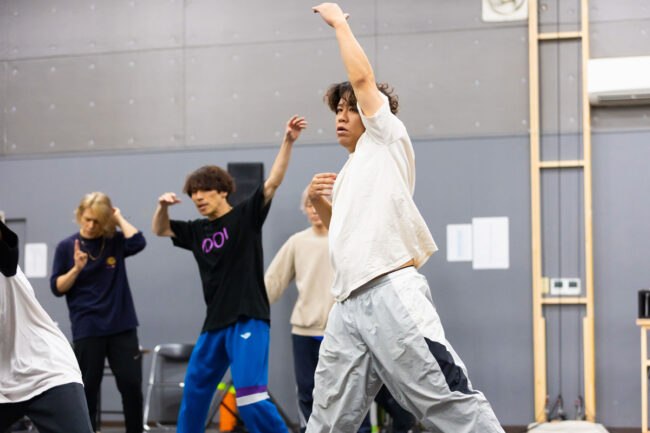 通しとはいえ稽古段階のため、時折動きや振付の確認が入る。緊張感がありつつ、和気あいあいとした雰囲気で進んでいた。全員が真剣に取り組み、全力で楽しむ姿勢が、何度見てもワクワクできる作品に繋がっているのではないだろうか。