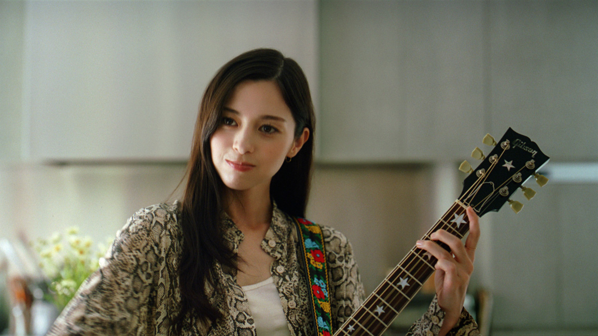 “糖質ブラザーズ”の前に、ギターを手にした中条が現れて鋭い一言を投げ掛けるシーン。登場時の「♫ジャン」という音を、その場の空気に合わせてタイミング良く奏でるのに、中条が「難しい~」と苦労していると、布袋が「少しレッスンしましょうか」とすぐさま即席ギター教室を開催。始めは意図とやや違う音が出たり、弾くタイミングがズレたりしていたのが、瞬く間に印象的なメロディーへと変化。直後のテイクでは、自らの演奏に手応えがあったのか、監督がカットを掛けた後、思わず「お~!」と驚きの笑みを浮かべた中条の上達ぶりに、布袋も傍らで見守っていた豊川とともに目を細めていた。