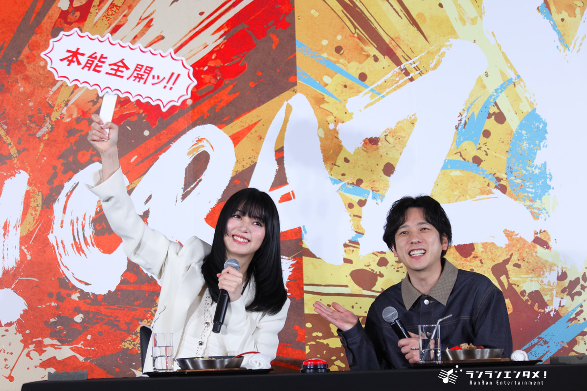 「まさかこの発表会でこんな勉強の時間があると思ってなかったので、なるほどと思いました」と頷く二宮だったが、MCは「少し難しいお話をいたしましたが、ぜひ皆さんもね、ご自身の本能のままに、『丸亀うどんメシ』を召し上がっていただければ」と続け、改めて、二人に質問を投げかけた。「食べたいから食べるというのが本能。逆に理性より本能が勝つ瞬間はどんなとき?」