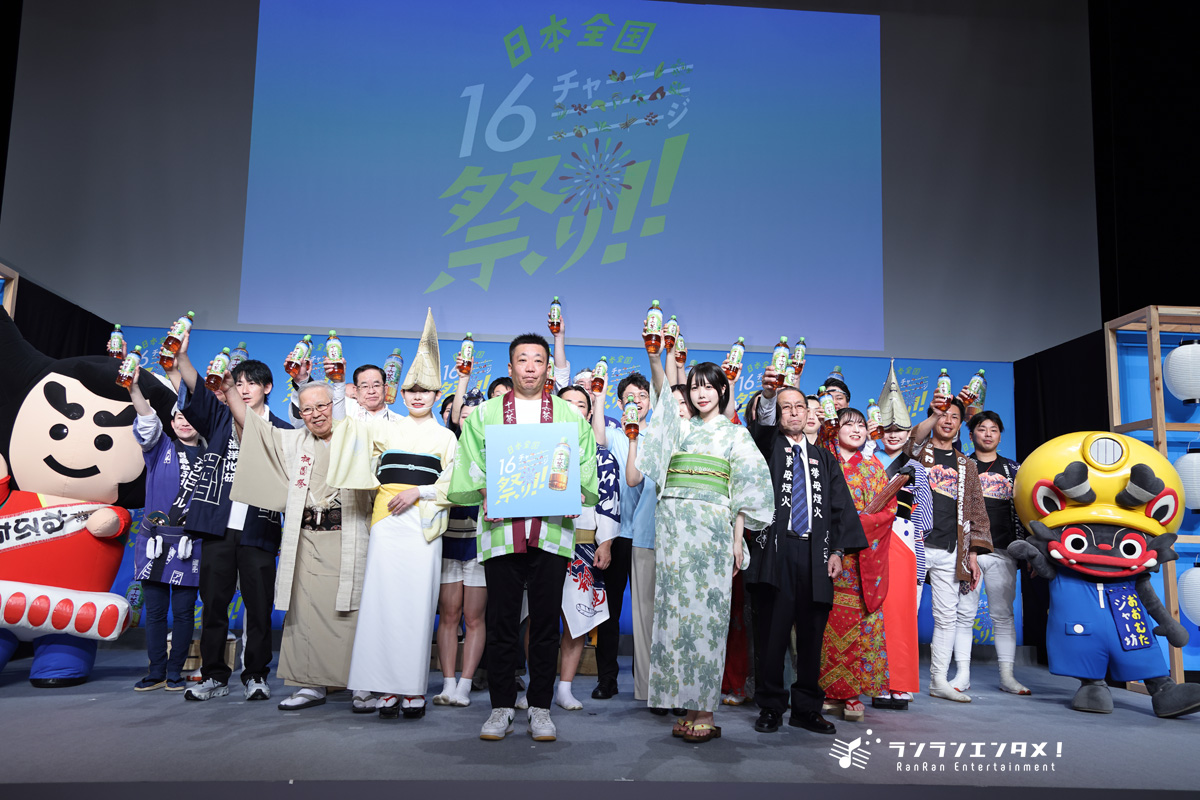 『アサヒ十六茶』を販売するアサヒ飲料㈱が「日本全国16チャーーージ祭り!!」を開催。4月7日(火) にはプレス発表会が行われ、昨年より『アサヒ十六茶』のCM楽曲を歌唱するあのがゲストとして登壇した。「日本全国16チャーーージ祭り!!」は、全国8つのお祭り・花火大会と連動したキャンペーン施策で、お祭り会場にて16万本のアサヒ十六茶配布や、アサヒ十六茶ブランド商品購入で豪華観覧席が当たるイベントが用意される。あのは全国8つのお祭り・花火大会の関係者らと共に本発表会を盛り上げた。