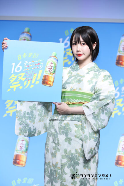 そして、十六茶の話題を振られ「これからの時期、夏場は絶対ゴクゴク飲みたいなって思います。ライブの後はめっちゃいいなと思って。去年武道館でライブをやったとき、鏡割りを用意してくれて、バーンって割ったらお酒ではなく十六茶でした。ごくごく飲んで、めちゃくちゃフレッシュになるので超良かった! いっぱい運動した後とかオススメです」とアピール。「日本全国16チャーーージ祭り!!」についも「(アサヒ十六茶は)お祭りと相性がいいなって思います。暑い季節に相性ぴったり。汗かいて喉も乾いたときに十六茶を推していただけたらなって思います」と声高に呼びかけた。