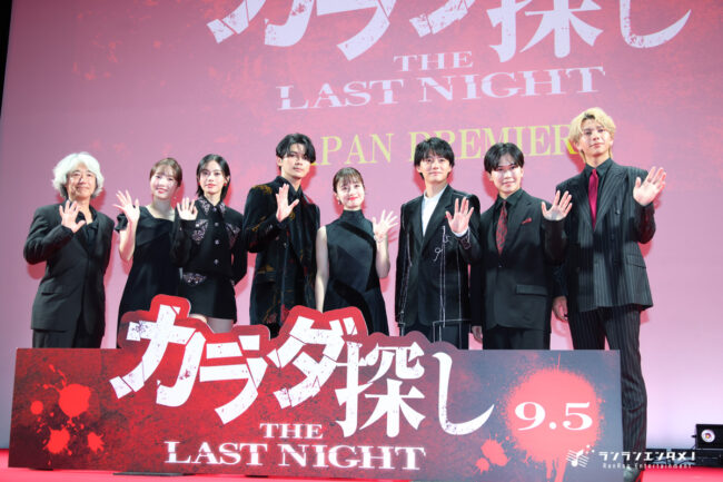 10代・20代の男女から絶大な人気を誇り、2022年公開のホラー映画No.1大ヒットを記録した実写映画『カラダ探し』の最新作、映画『カラダ探し THE LAST NIGHT』のジャパンプレミアが8月12日(火) に都内劇場で行われた。イベントには、大ヒットを記録した前作に続き主演を務める橋本環奈と、同じく前作から続投となる眞栄田郷敦、新たな“カラダ探し”に挑む櫻井海音、安斉星来、鈴木福、本田真凜、吉田剛明、そして前作同様メガホンを取った羽住英一郎監督が登壇した。