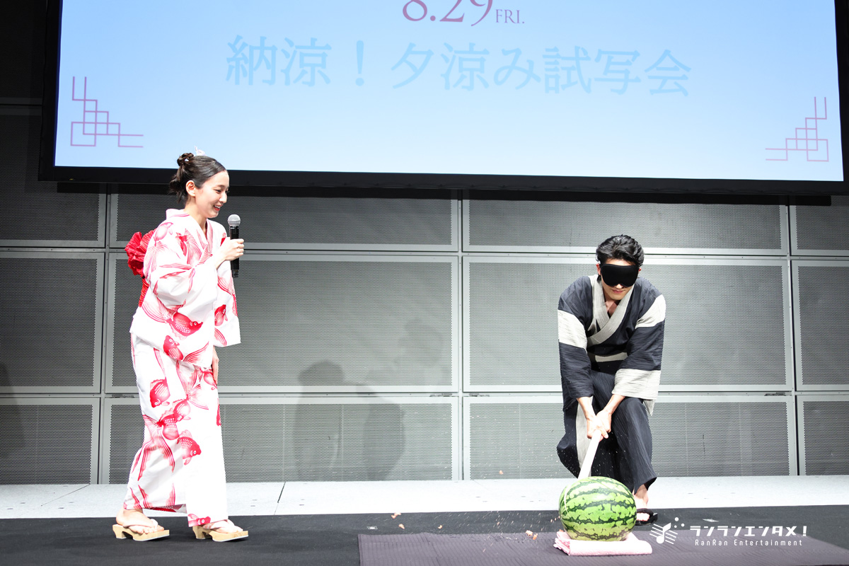 吉岡⾥帆&⽔上恒司 浴衣姿で登壇! ヒット祈願のスイカ割りも⼤成功! 映画『九⿓ジェネリックロマンス』⼣涼み試写会