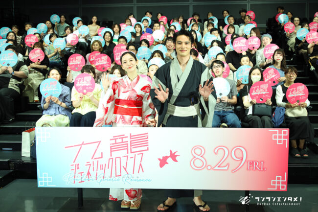 映画『九⿓ジェネリックロマンス』の「⼣涼み試写会」と称した公開直前イベントが8月14日(木)、都内で行われ、W主演の吉岡⾥帆、⽔上恒司が登壇した。