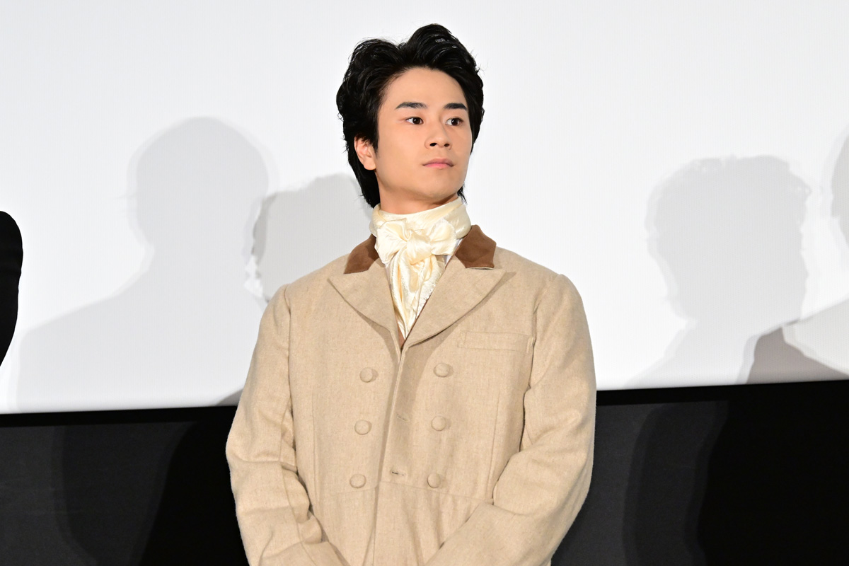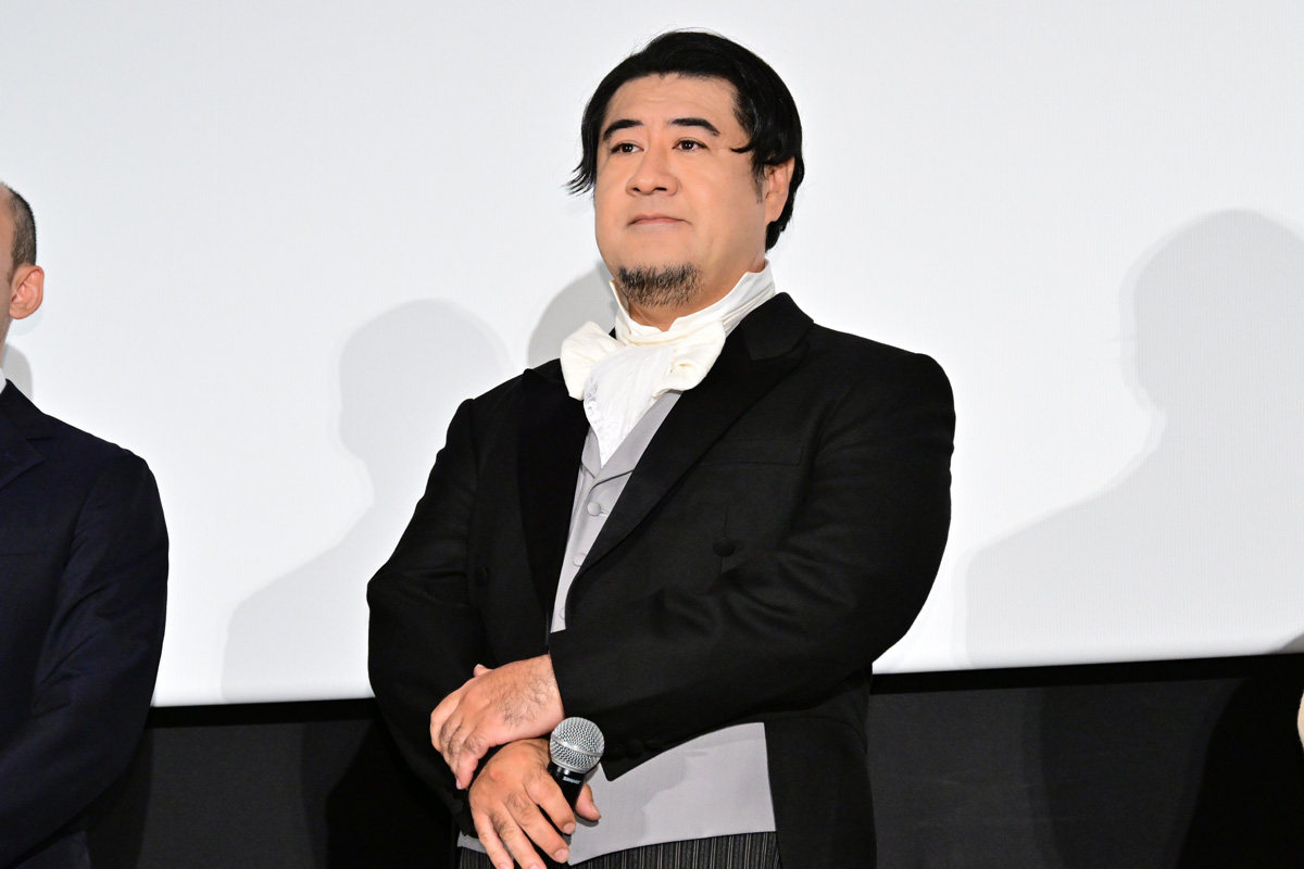キャストたちは、19世紀のウィーンを舞台にした本作の劇中衣装でレッドカーペットに登場!会場中央のエスカレーターから続々とキャストが降りてくると、集まった観客から大きな拍手が沸き起こった。愛が重すぎるベートーヴェンの秘書シンドラーを演じた山田は「エスカレーターで登場するのが初めてで、みんなで困惑しました」と笑わせつつ「今日初めてお客様に観ていただけるのがとても楽しみです」と挨拶。耳が聞こえない聖なる天才音楽家と言われているベートーヴェンを演じた古田は「この歳になってドイツ人をやるとは…。でも監督と脚本のバカリちゃんが色々な作戦を考えてくれて、良い感じで恥ずかしくない感じのベートーヴェンの物語になっています」とPRした。