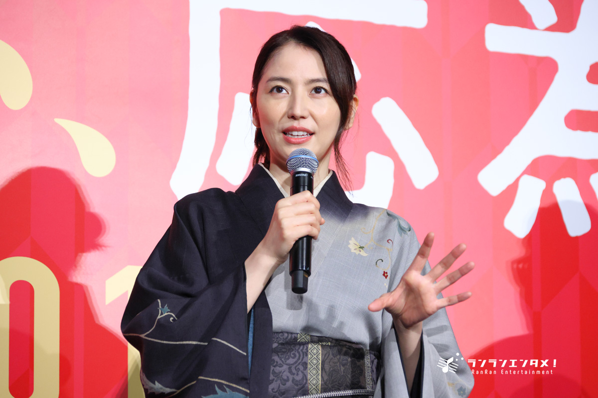 冒頭、応為を演じた長澤は「本日は応為を演じていたあの時をすごく良い思い出として、私の人生に抱きついているので、そんな気持ちを込めて応為っぽく着物を着てきました。親子の日常を淡々と覗き見しているような映画になっているので、ぜひ皆さんと楽しい時間を過ごせたら」と話した。