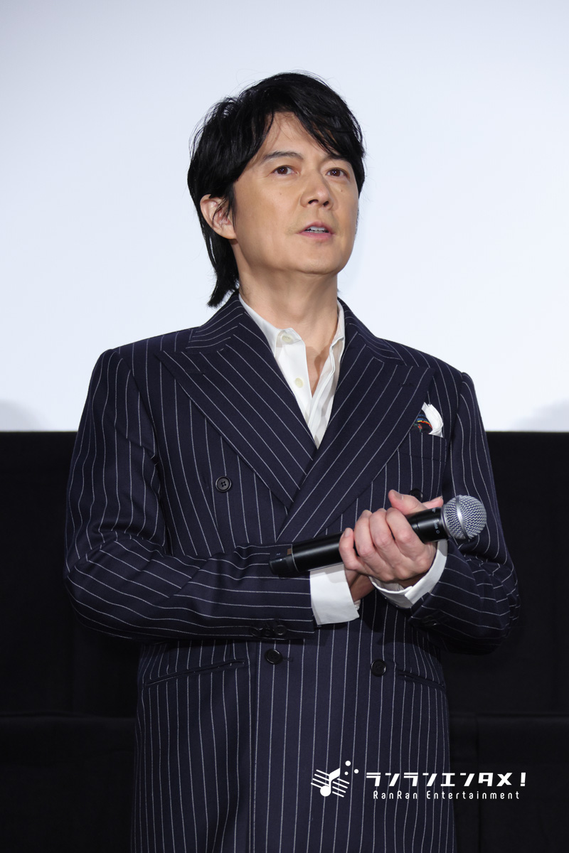冒頭、福山は「いや、今日は本当に雨が降って寒い。誰のせいなんでしょうか」と大泉の雨男ぶりにボヤキを入れ「寒い中でもお集まりいただけて、この映画ご覧になっていただけて、そしてクリスマスイブ、メリークリスマス!」と笑顔で呼びかけた。