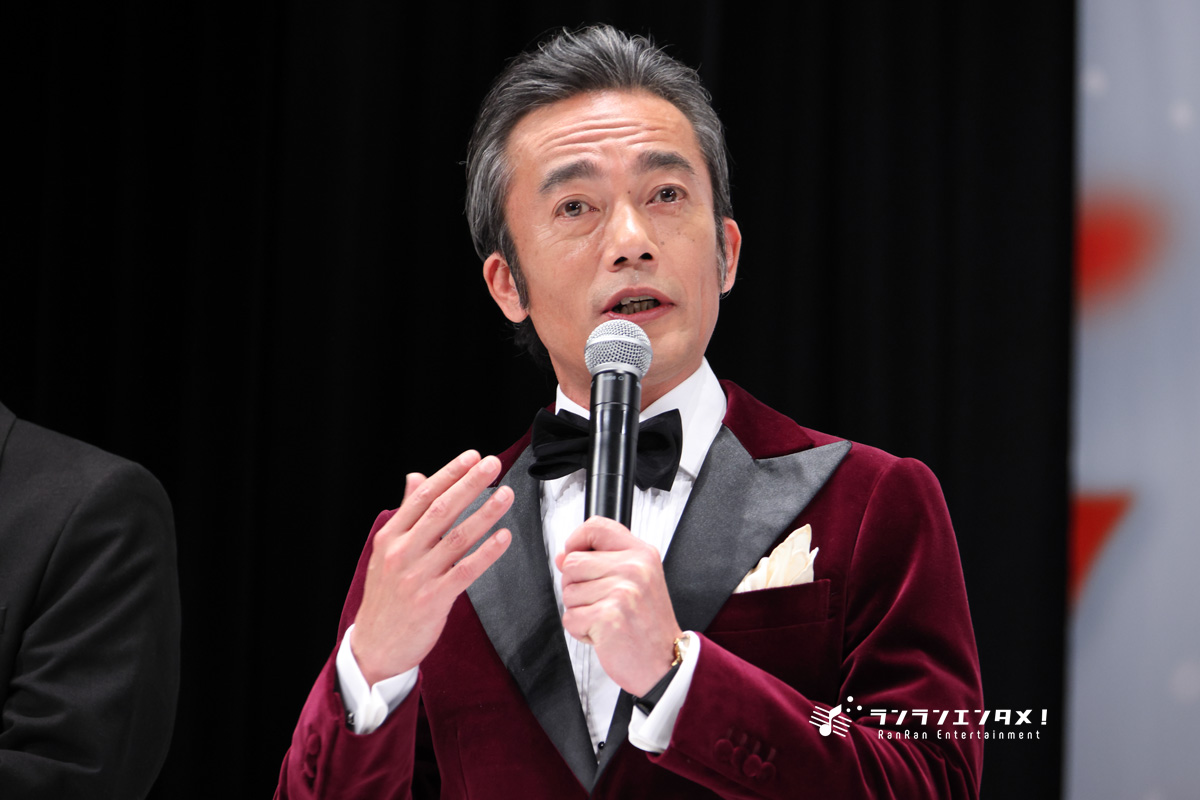 与三郎役の滝藤は「私はとても自分とはかけ離れた役だったので、困ったなって思ったんですけど、本当に撮影の合間に健さんを中心にみんなで集まって、お話ししてくださり、みんなに与三郎にしていただいた」と感謝。高橋は「江戸時代のトランスジェンダーで、誰よりも早く新しい時代を予見していた役ですね。メイクも時間が人一倍かかりました」と話した。