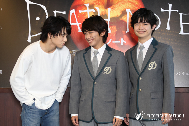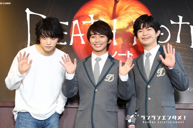 三人は初共演、お互いの印象について問われ、三人が揃って「僕たち仲がいいですよね」と話し、楽屋用として150センチ長のクリスマスツリーを置いて、一日1個づつオーナメントを買ったことを明かした。さらに、加藤は「碧は、役とか作品に対しての向き合い方がずっと途切れることなく真摯で居続けられる人。(渡邉とは)同じ役をやっているので、碧と話すことで膨らむ部分がすごくありました。一方、こちらの人(三浦)は変な人です。ちゃらんぽらんな感じがするんですけど、根の底ではすごく真面目。舞台後半では月とLが対峙する場面があるんですけど、Lの中でまさぐっている炎のようなものが感じられて、それが月にも火をつけてくれる感覚のある役者さんです」と二人を評価。