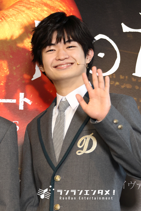 11月24日(月) 東京建物Brillia HALLにて初日を迎える『デスノート THE MUSICAL』10th anniversary公演の公開ゲネプロおよび囲み会見が11月23日(日・祝)に行われ、囲み取材には夜神月(やがみライト)役の加藤清史郎、渡邉蒼(Wキャスト)、そしてL 役の三浦宏規が登壇した。