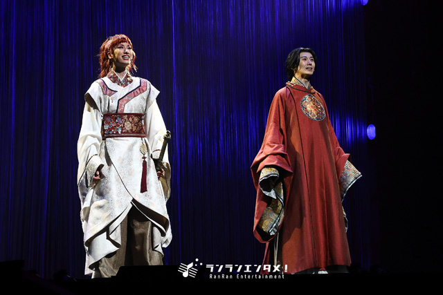 稽古中での印象的なエピソードについて問われ、柚香と加藤は「怒涛の稽古になりました。オリジナルを一から作っていく中、みんなでスタディ・プランを構築していく時間がもてないところ、楽俊(らくしゅん)がいつも癒しになってくれました」と話した。