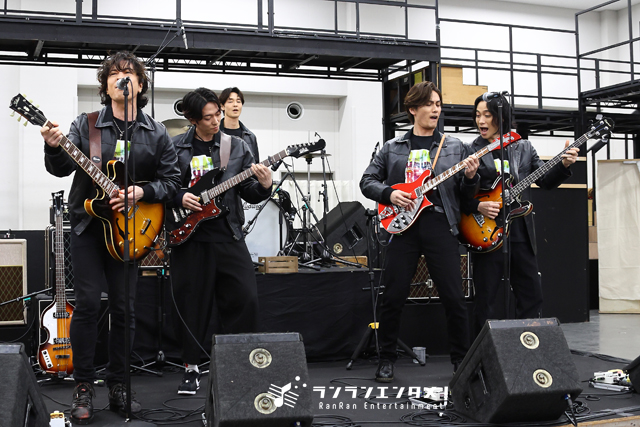 この日の公開稽古では、「Long Tall Sally」リードボーカル:ポール・マッカートニー(JUON)、「Love Me Tender」リードボーカル:スチュアート・サトクリフ(戸塚)の2曲が演奏された。「Long Tall Sally」では、楽しそうに音楽を奏で、思い思いに暴れる5人の姿が印象に残った。